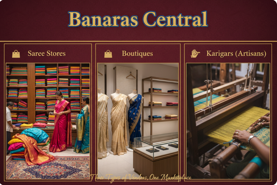 Select your store, compare prices, and delve into Banaras saree market from home.